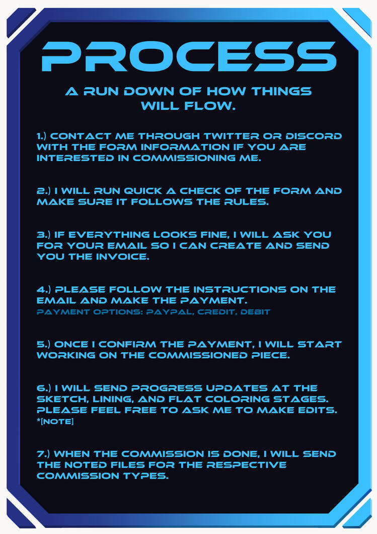 • If you are not comfortable with my Terms Of Service and/or are not willing to agree to the conditions, you may not request a commission.